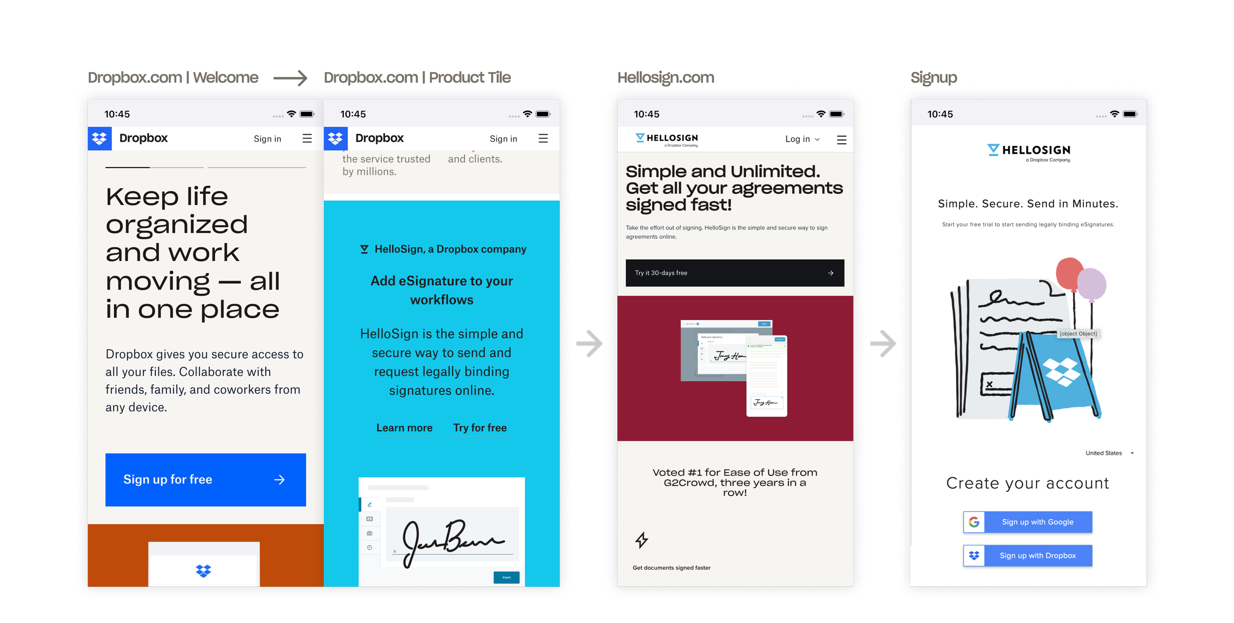 For the first experiment, we will enable visitors to discover HelloSign & DocSend.